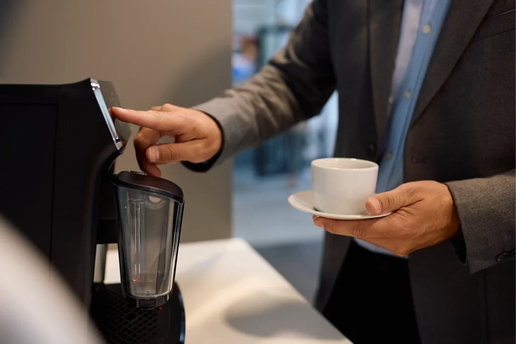 Shared stations offering coffee, tea, and filtered water to keep you refreshed and motivated throughout the day.